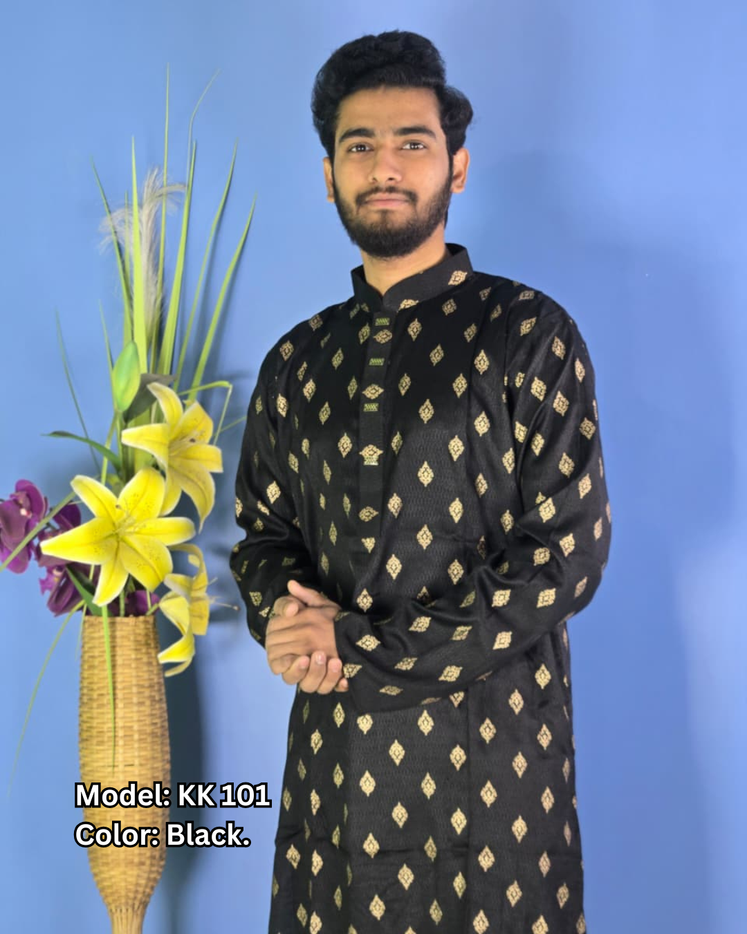 জিকুক প্রিন্টেড ব্ল্যাক পাঞ্জাবি (KK 101)